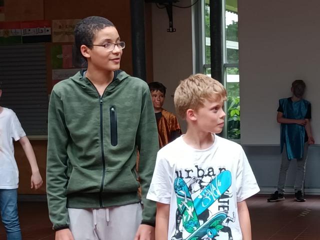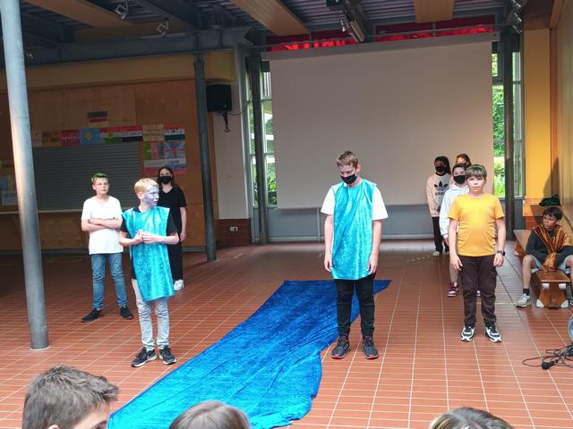 Die Aufführung vor Eltern und Lehrer*innen wurde mit begeistertem Applaus belohnt und war ein voller Erfolg. Und natürlich ist die Moral der Geschichte „Wer vorwärts kommen will, muss auch zur Seite treten können“ im Großen und Kleinen aktueller denn je.